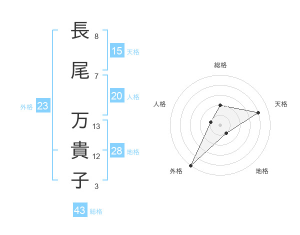 長尾 万貴子さんを姓名の画数から五運を鑑定