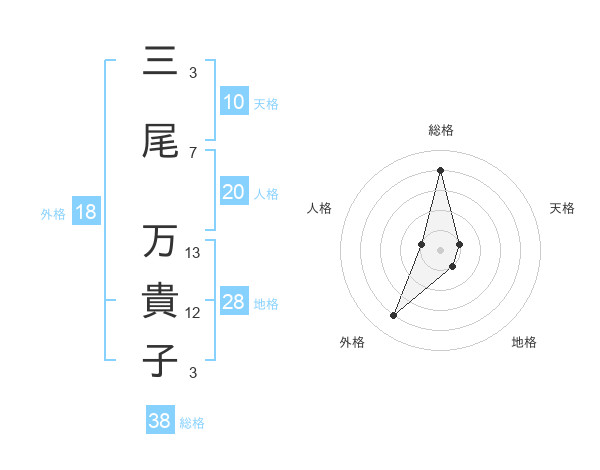 三尾 万貴子さんを姓名の画数から五運を鑑定