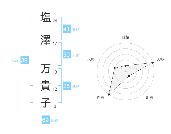 塩澤 万貴子さんの地格は28画の1点!