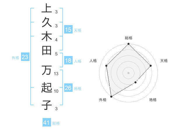 上久木田 万起子さんを姓名の画数から五運を鑑定