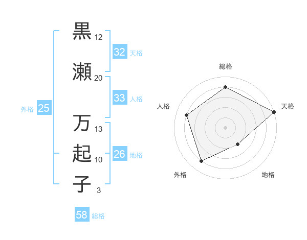 黒瀬 万起子さんを姓名の画数から五運を鑑定
