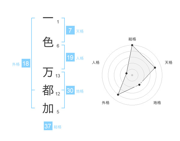 一色 万都加さんの総格は37画の5点!