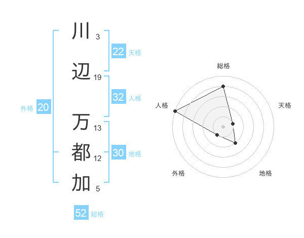 川辺 万都加さんの総格は52画の4点!