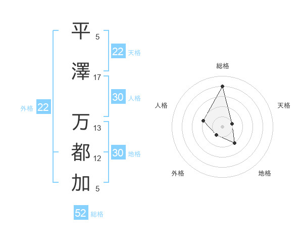 平澤 万都加さんを姓名の画数から五運を鑑定
