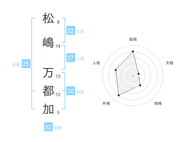 松嶋 万都加さんを姓名の画数から五運を鑑定