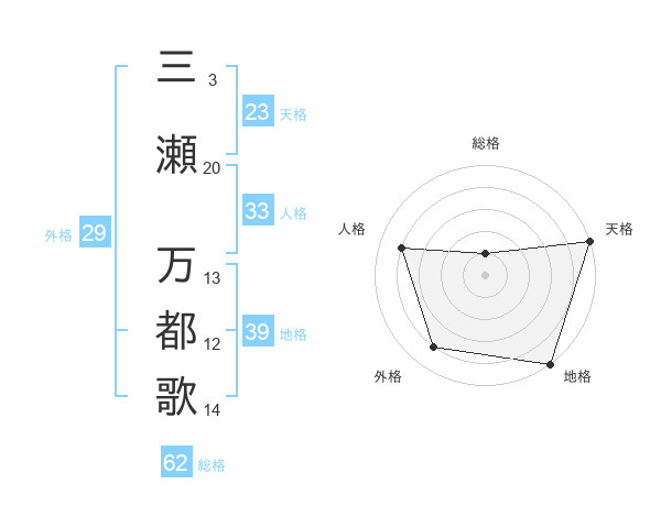 三瀬 万都歌さんを姓名の画数から五運を鑑定