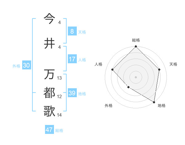 今井 万都歌さんを姓名の画数から五運を鑑定