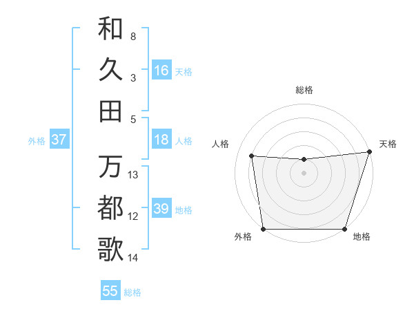 和久田 万都歌さんを姓名の画数から五運を鑑定