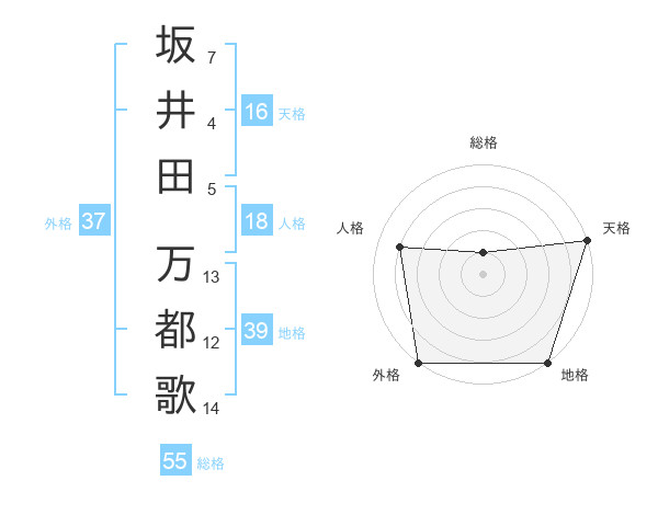坂井田 万都歌さんを姓名の画数から五運を鑑定