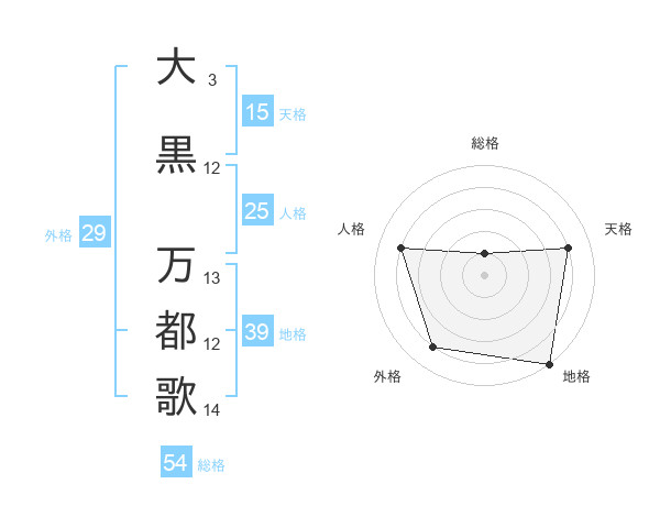 大黒 万都歌さんの外格は29画の4点!