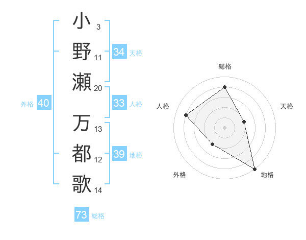 小野瀬 万都歌さんを姓名の画数から五運を鑑定