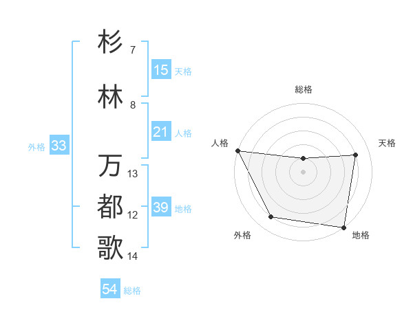 杉林 万都歌さんの地格は39画の5点!