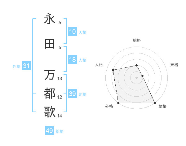 永田 万都歌さんの外格は31画の5点!