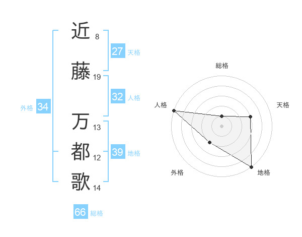 近藤 万都歌さんの総格は66画の1点!