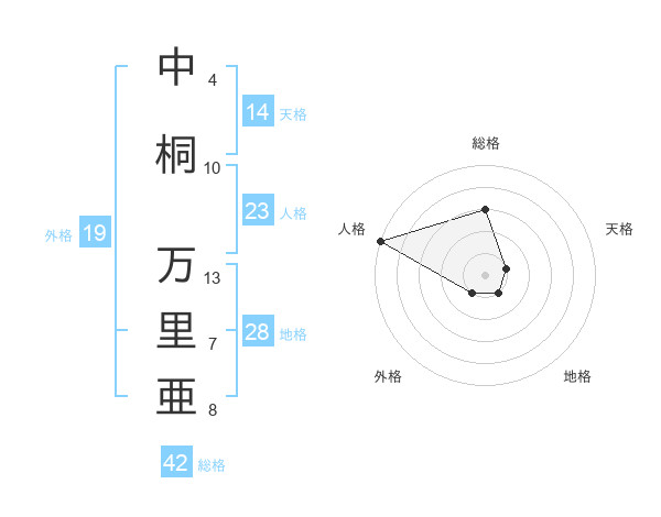 中桐 万里亜さんを姓名の画数から五運を鑑定