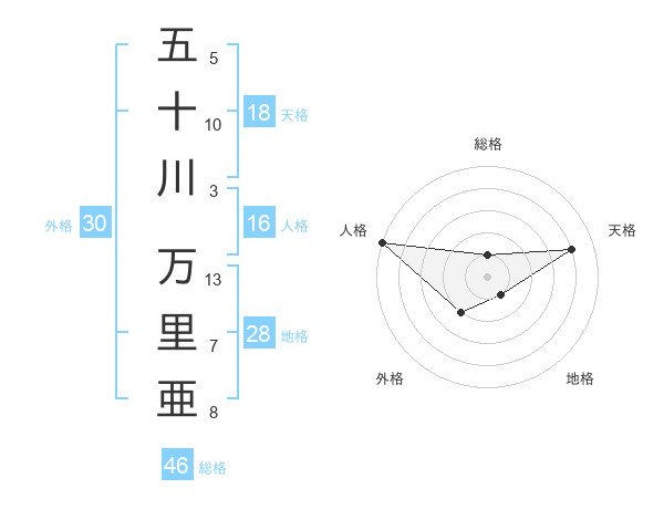 五十川 万里亜さんを姓名の画数から五運を鑑定