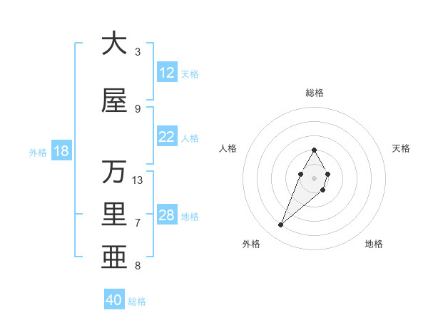 大屋 万里亜さんを姓名の画数から五運を鑑定