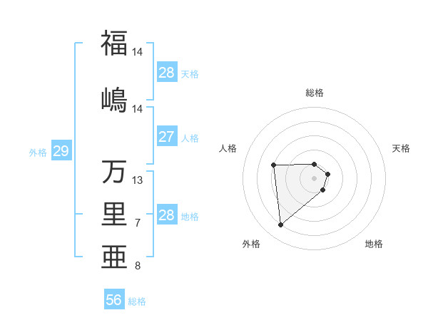 福嶋 万里亜さんを姓名の画数から五運を鑑定