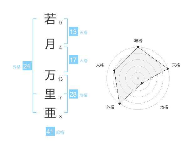 若月 万里亜さんの天格は13画の5点!