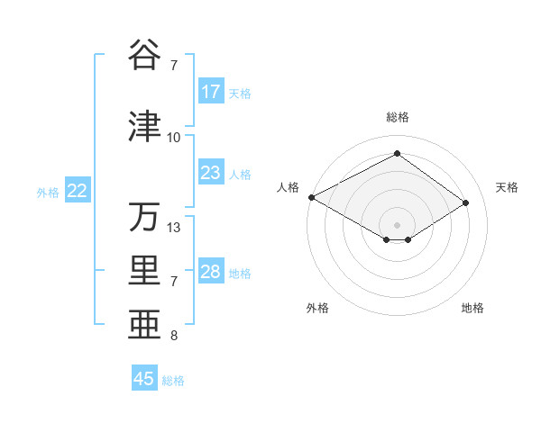 谷津 万里亜さんを姓名の画数から五運を鑑定