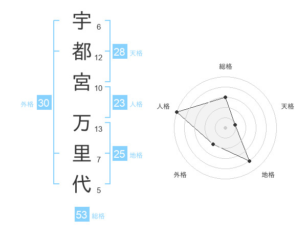 宇都宮 万里代さんを姓名の画数から五運を鑑定