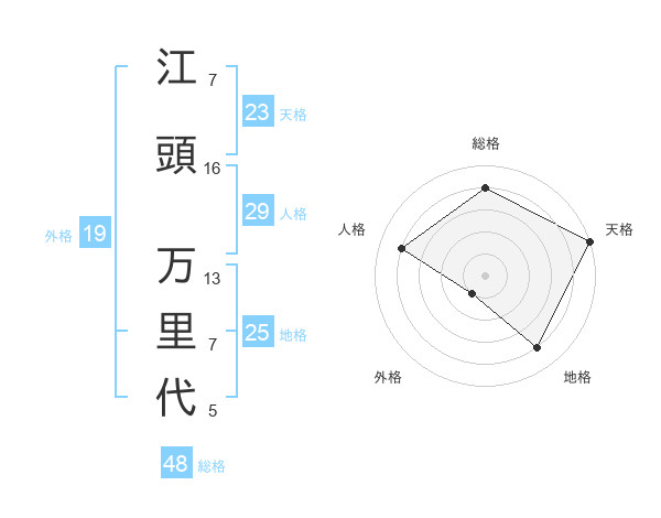 江頭 万里代さんを姓名の画数から五運を鑑定