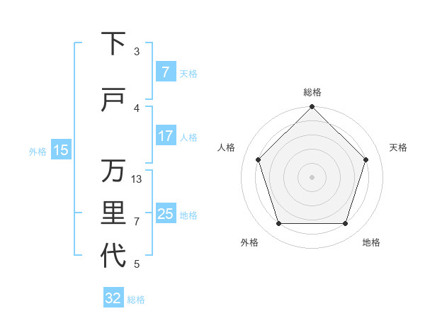 下戸 万里代さんを姓名の画数から五運を鑑定