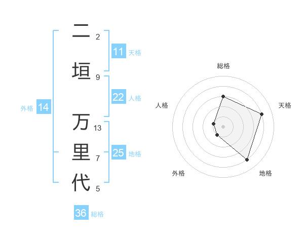 二垣 万里代さんを姓名の画数から五運を鑑定