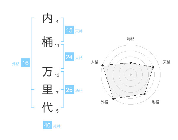 内桶 万里代さんの外格は16画の5点!