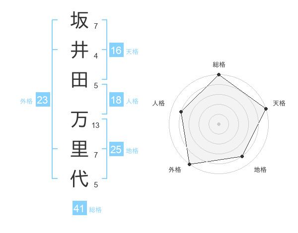 坂井田 万里代さんを姓名の画数から五運を鑑定
