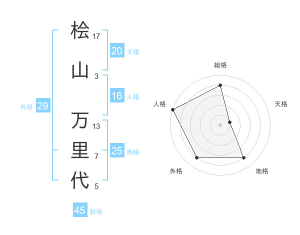 桧山 万里代さんの総格は45画の4点!