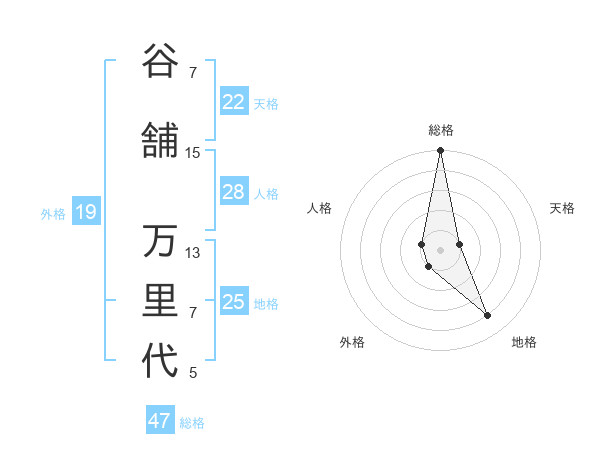 谷舗 万里代さんの総格は47画の5点!