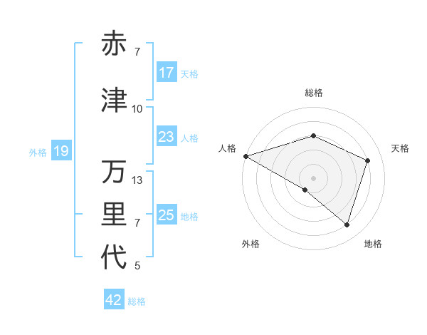 赤津 万里代さんを姓名の画数から五運を鑑定