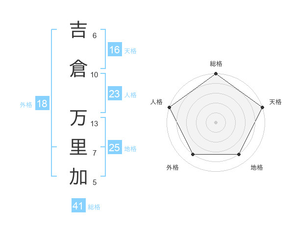 吉倉 万里加さんを姓名の画数から五運を鑑定