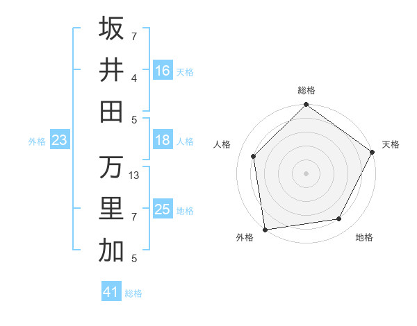 坂井田 万里加さんを姓名の画数から五運を鑑定