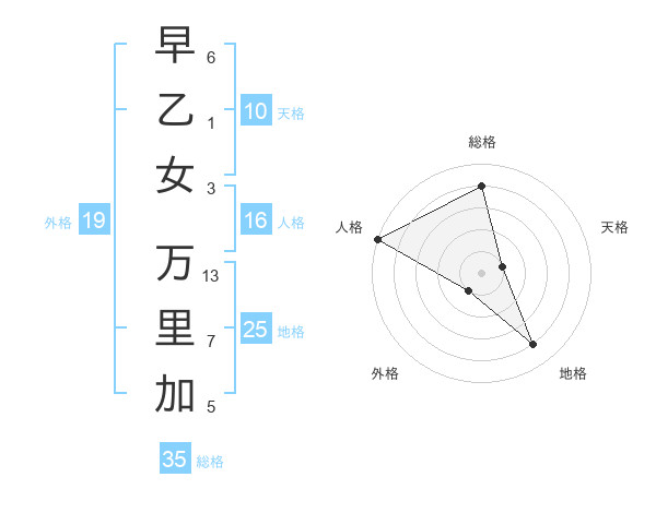 早乙女 万里加さんの外格は19画の1点!