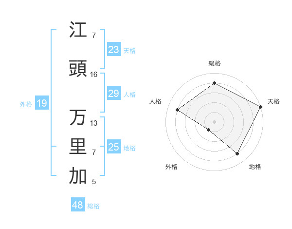 江頭 万里加さんを姓名の画数から五運を鑑定