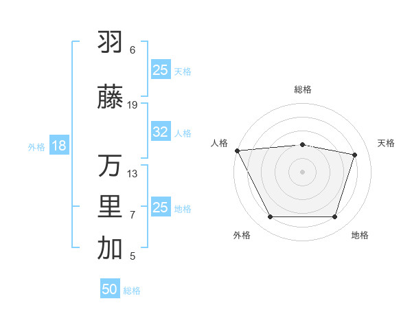 羽藤 万里加さんを姓名の画数から五運を鑑定
