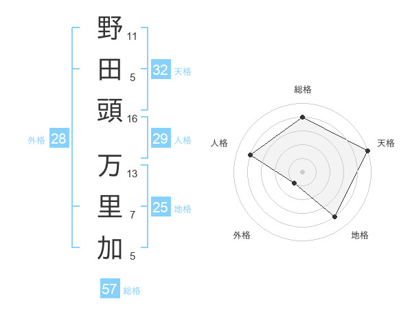 野田頭 万里加さんを姓名の画数から五運を鑑定