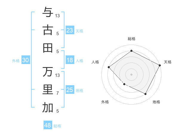 与古田 万里加さんを姓名の画数から五運を鑑定