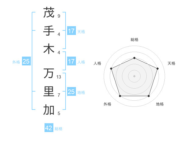 茂手木 万里加さんを姓名の画数から五運を鑑定