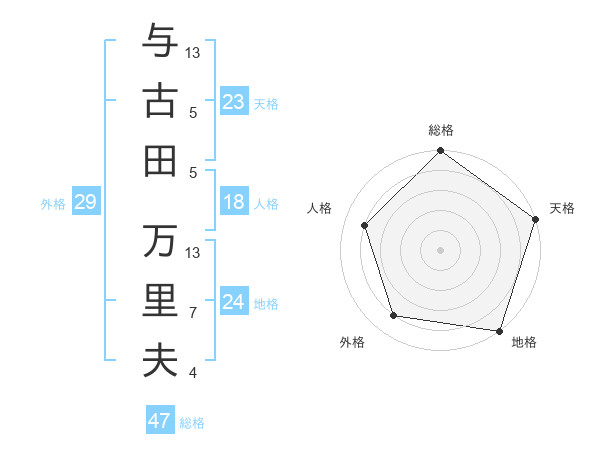 与古田 万里夫さんを姓名の画数から五運を鑑定