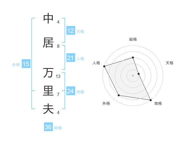 中居 万里夫さんを姓名の画数から五運を鑑定