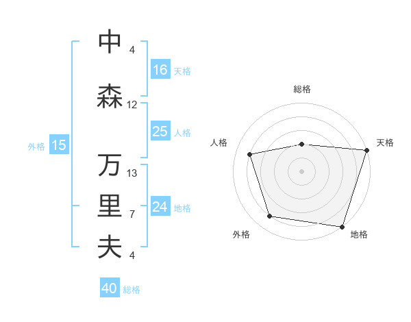 中森 万里夫さんを姓名の画数から五運を鑑定