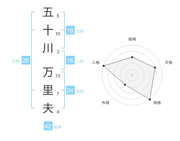五十川 万里夫さんを姓名の画数から五運を鑑定