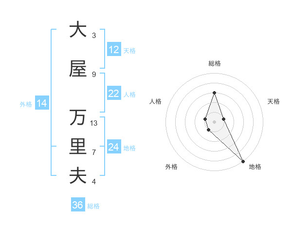 大屋 万里夫さんを姓名の画数から五運を鑑定