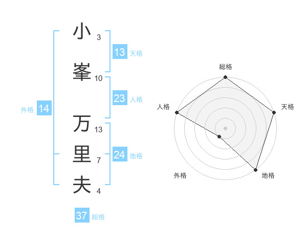 小峯 万里夫さんを姓名の画数から五運を鑑定