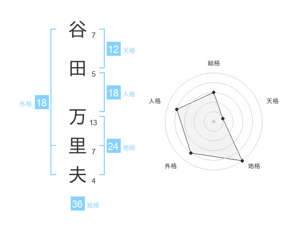 谷田 万里夫さんを姓名の画数から五運を鑑定