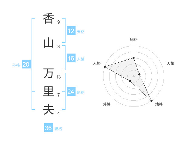 香山 万里夫さんの天格は12画の1点!