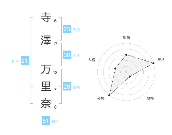 寺澤 万里奈さんを姓名の画数から五運を鑑定